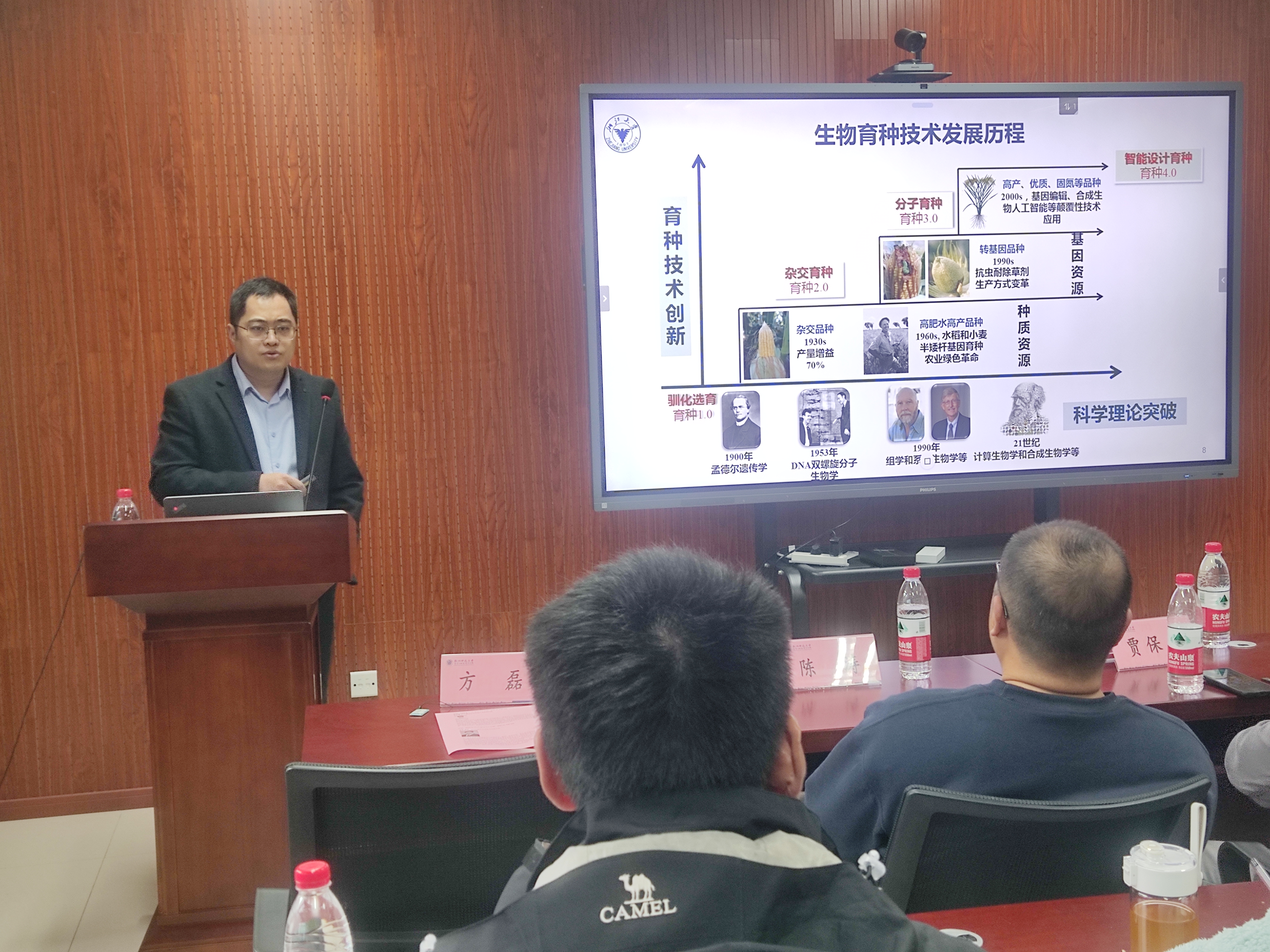 方磊教授介绍了一方面利用棉花大数据挖掘优异等位变异,开发棉花育种芯片,另一方面构建棉花纤维调控的表观遗传网络,鉴定表观调控的候选基因,最终结合合成生物学、遗传编程和人工智能等技术,实现信息技术IT与生物技术的BT的融合发展,为棉花基因组智能设计育种提供新的理论和技术。