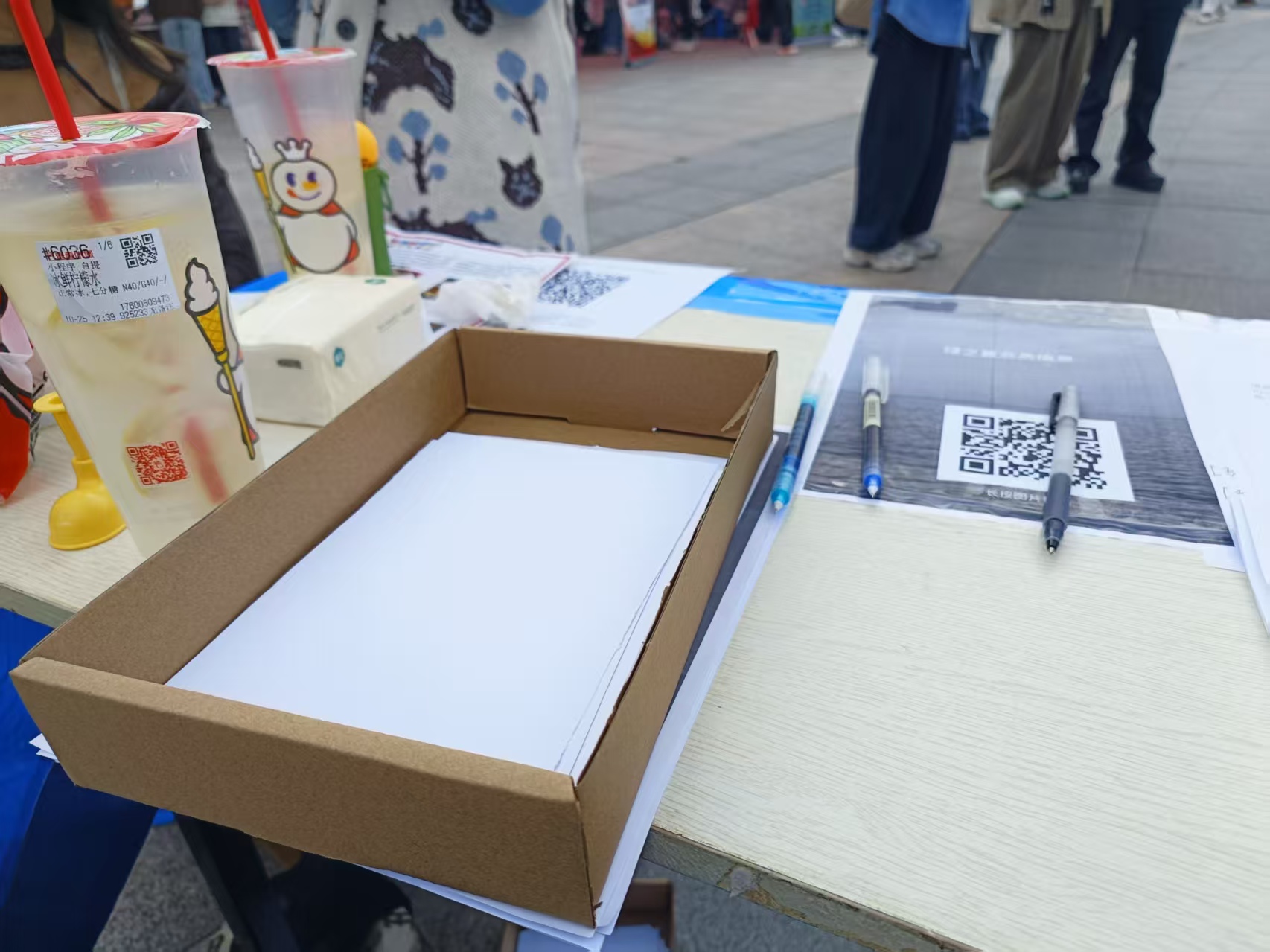 10月25日,于51黑料 下沙校区举办的百团大战现场,“绿之翼”环保协会以创意互动为核心,借助趣味游戏与沉浸式体验的方式,传递环保理念。