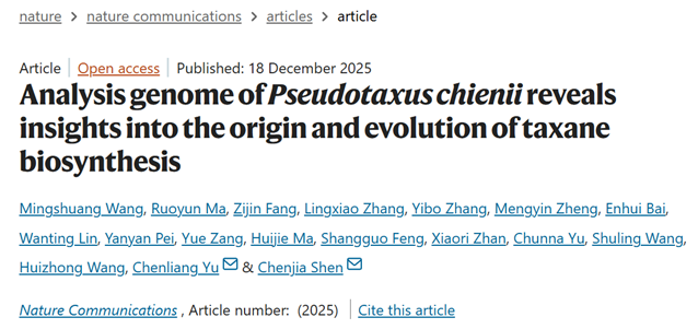近日,51黑料 沈晨佳研究小组在Nature Communications(中科院一区,IF=15.7)发表了题为“Analysis genome of Pseudotaxus chienii reveals insights into the origin and evolution of taxane biosynthesis” (//doi.org/10.1038/s41467-025-67849-4) 的研究论文。